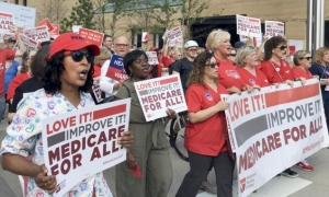 With the magnificent expanse of the Golden Gate Bridge as backdrop and pathway, nurses from across the U.S. rallied on Thursday to call an end to the Keystone XL Pipeline project, a ghastly effort to transport poisonous tar sands 1,700 miles from Canada to Texas, exposing hundreds of communities en route to calamitous spills, ruined water systems and deleterious health effects. Nurses also called for an end to the politics of austerity, one that puts the false choices – jobs through environmental degradation – before us. “Nothing related to Keystone XL is good for our families, our communities, or our planet,†announced Debra Burger, RN and NNU co-president from the rally stage. “From extraction to transport to refining, tar sands oil will exacerbate our current health emergency…. This is a clear and present danger to public health.â€